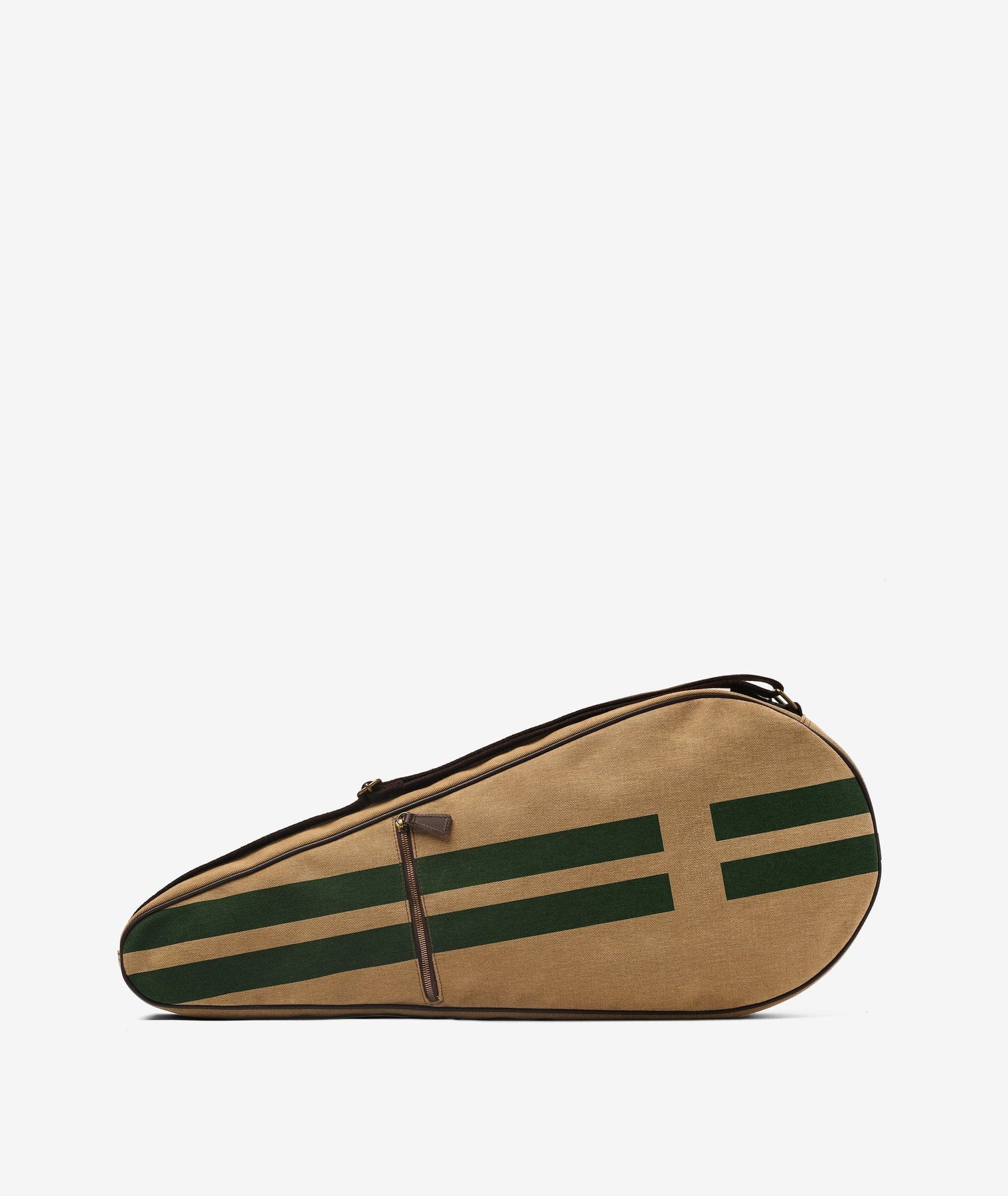 The Tennis racket holder from the FW25 collection is the perfect accessory for those who love to stand out on the ™court. Â Made of durable beige "peach skin" cotton and decorated with iconic vertical green bands, it combines practicality and style in a design with a strong sporty character.