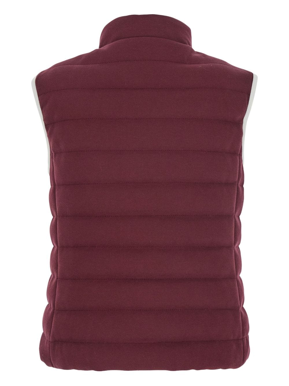 burgundy quilted design zip fastening sleeveless high neck logo patch Logo cotton vest