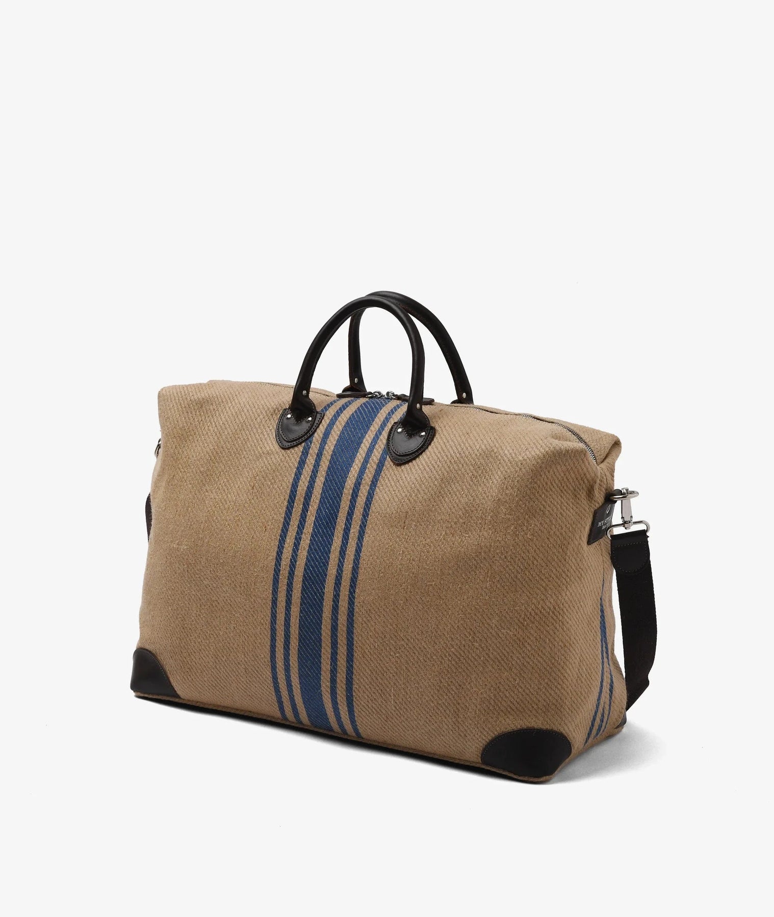 An icon of style and sophistication, the Harvard Large Yute Duffel Bag with Blue Stripes and Dark Brown Leather from the SS25 Summer Collection is perfect for those who want a distinctive and functional accessory for any trip.